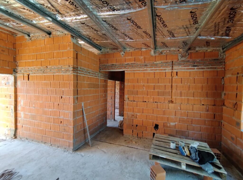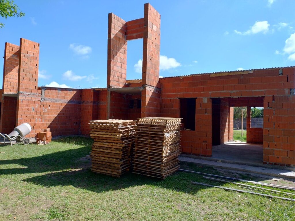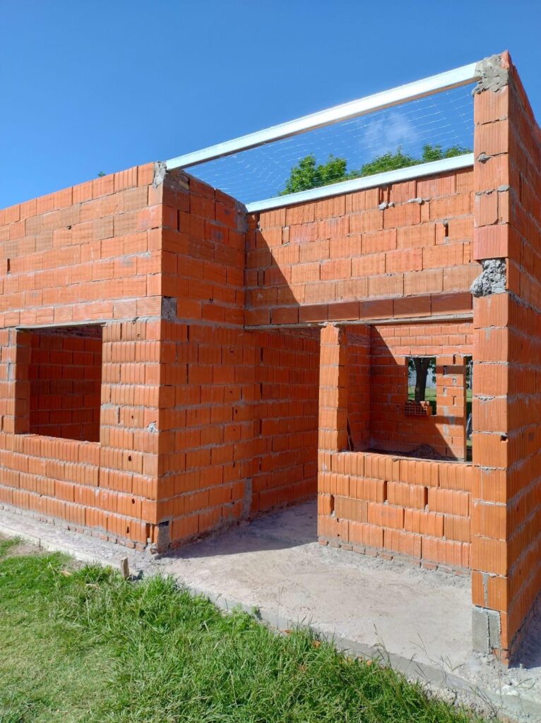 Según los informes técnicos, hasta el momento se ejecutaron las 7 plateas de hormigón armado con su armadura correspondiente y se realizó la instalación cloacal bajo platea. En 5 viviendas se ejecutó el 90 % de la mampostería de ladrillos comunes y cerámicos portantes, mientras que en las 2 restantes el avance fue de un 50 %. Además, se montó la estructura de techos con la aislación y la chapa de las 5 viviendas compactas.