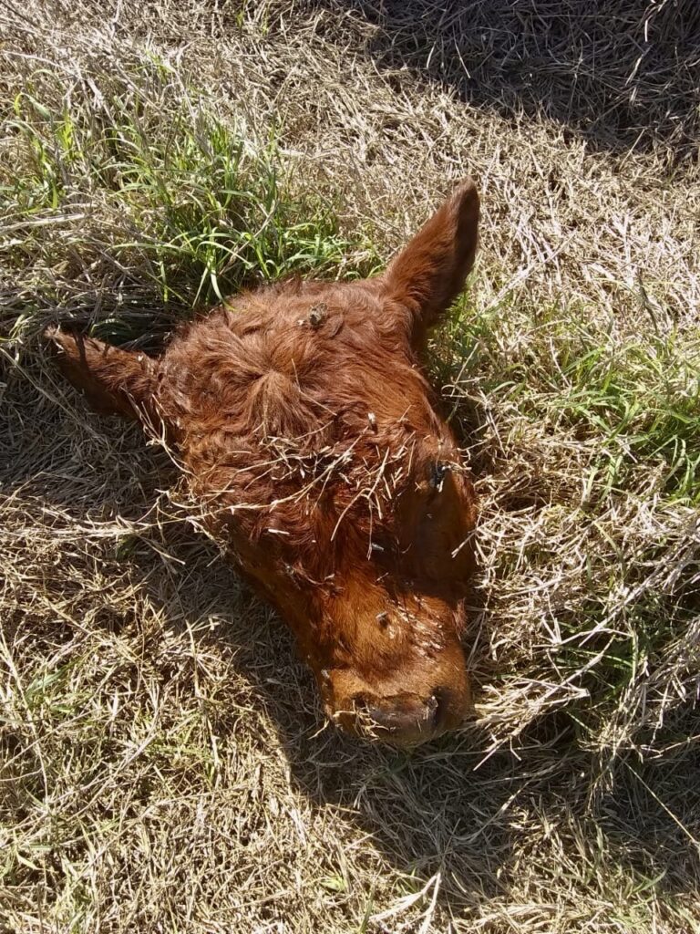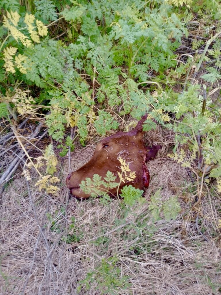 En el último robo, el del jueves 25 de septiembre, también se llevaron dos terneros, el día lunes 29 de septiembre, cuatro días después, fueron hallados al mediodía, agonizando y escondidos en una cuneta atados con hilo negro de rollo por sus patas; el hallazgo fue realizado por un empleado de una estancia vecina que circulaba por el lugar en moto cuando logro visualizar a ambos terneros, (foto).