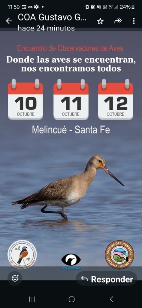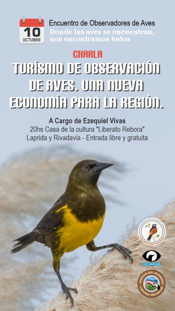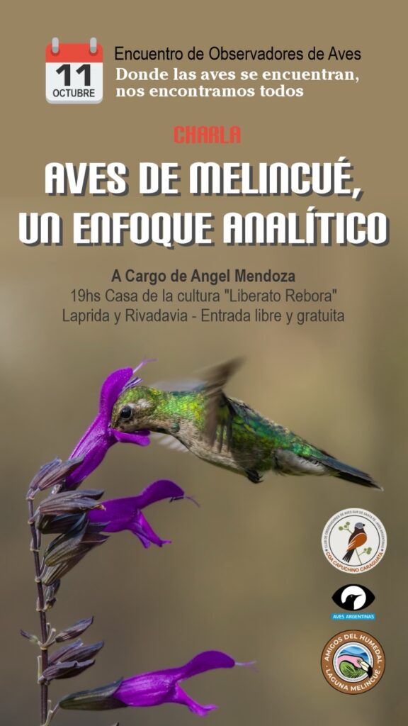 Queremos invitarlos a participar del Encuentro de Observadores de Aves en Melincué (Santa Fe), que realizaremos los días 10, 11 y 12 de octubre, organizado por Amigos del Humedal Melincué y el COA Capuchino Caraguatá.
