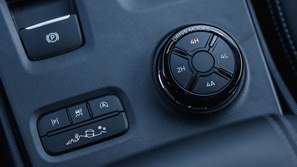 5 – Prestaciones todoterreno: Ranger siempre se destacó por su desempeño todoterreno, y esta nueva generación lleva sus capacidades on y off-road al siguiente nivel, con un nuevo sistema de tracción inteligente 4WD (único en el segmento con caja de transferencia) que incluye las opciones 4×2, 4×4 Alta y 4×4 Baja y 4×4 Auto, que distribuye la tracción entre los ejes según demanda. También es el único producto del segmento con múltiples modos de conducción inteligentes y seleccionables por el conductor y pantalla de navegación. El diferencial trasero con bloqueo, los ganchos de remolque y los protectores inferiores de acero amplían su versatilidad todoterreno, que incluye una capacidad de inmersión de 800 mm, la mejor del segmento.